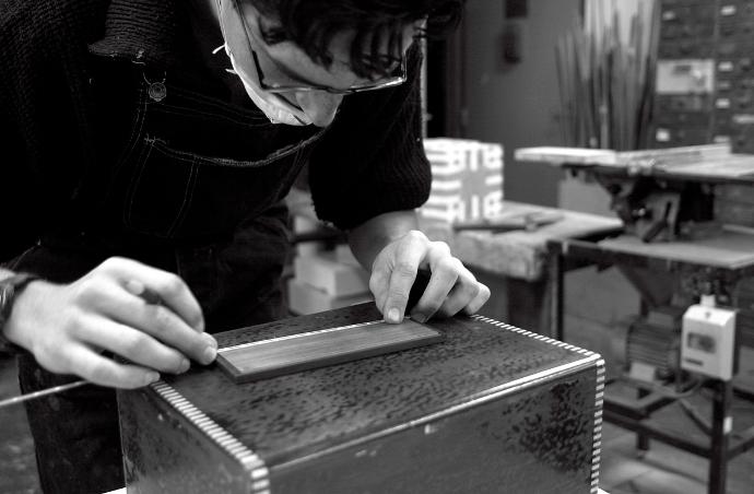 Die französische Möbeltischlerei Elie Bleu, die sich unter anderem auf die Herstellung edler Humidore spezialisiert hat, ist ein “Entreprise du Patrimoine Vivant”, eine Auszeichnung, die nur ausgewählten Unternehmen mit herausragendem handwerklichem Können verliehen wird. Die Handwerker, die in der vor den Toren von Paris gelegenen Manufaktur arbeiten, stammen häufig aus der Boulle-Schule, einer von Ludwig XIV. gegründeten Handwerkerschule, die Handwerker für den Bau des Schlosses von Versailles ausbildete.